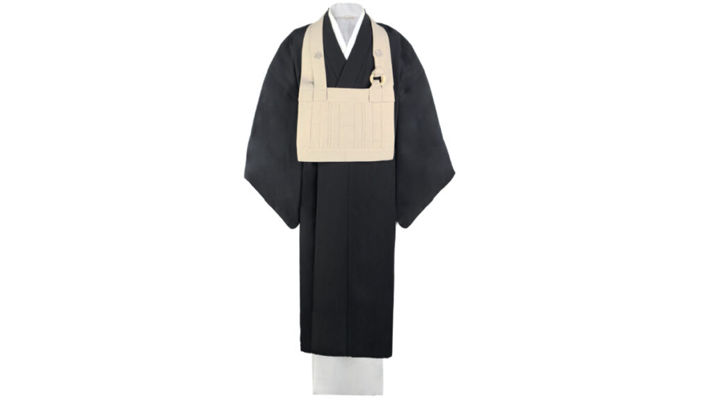 この写真で法衣の上に掛かっているベージュのもの。これが**絡子(らくす)**と呼ばれる袈裟の一種です。